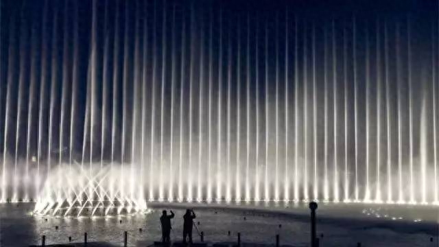 不同类型的喷泉,高低起伏,好似演员在水中翩翩起舞。