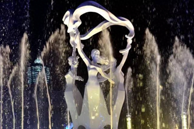 喷泉特别设计了一套景观细雾,“云雾飘渺”模式开启后,水雾会制造出云遮雾绕的效果,“八少女”就像仙女下凡一般。