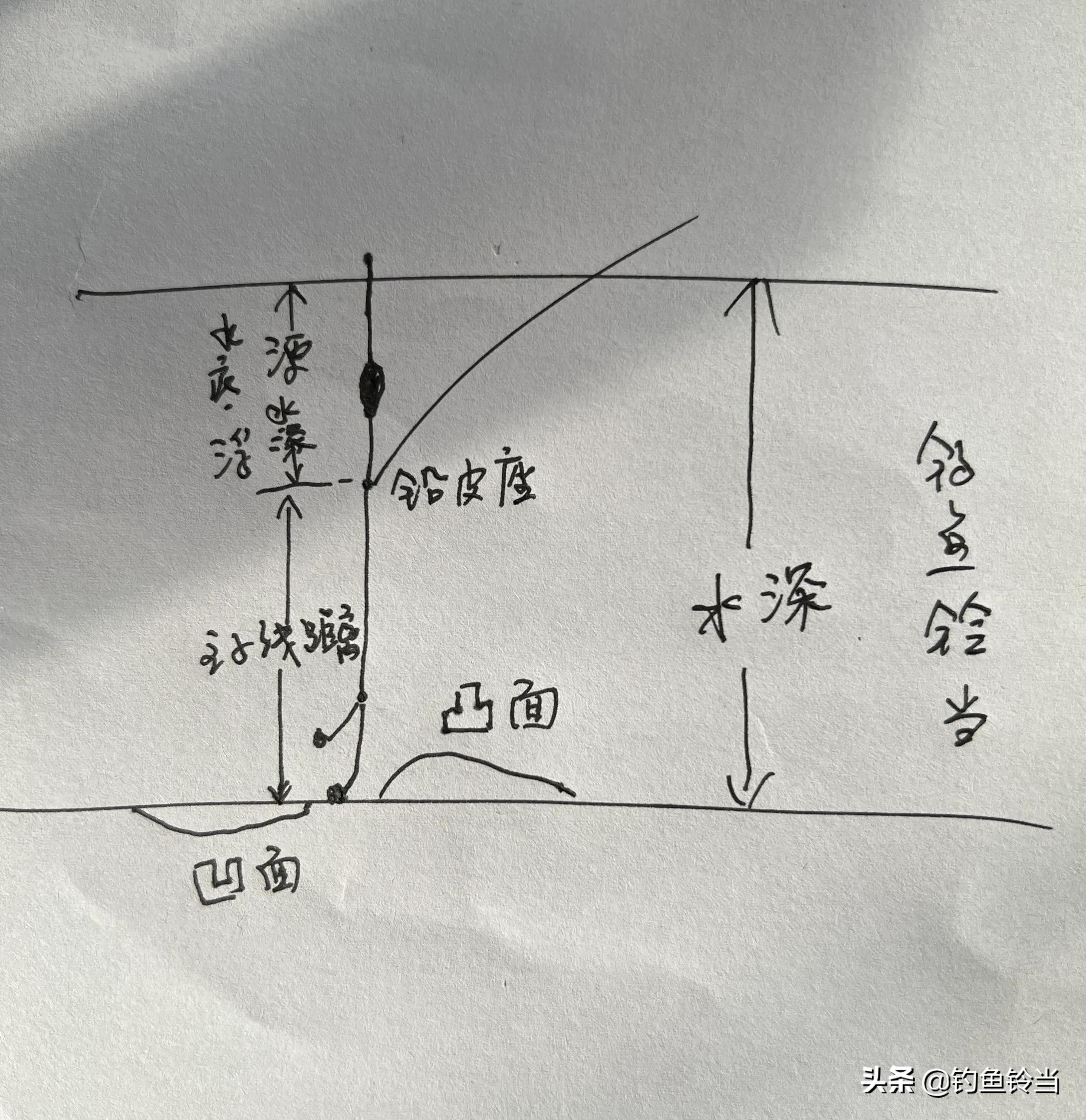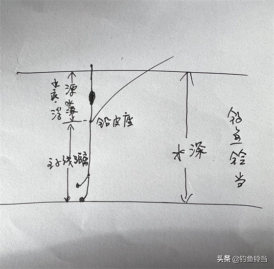 第一步,重铅找底(即找水深),露出一目。