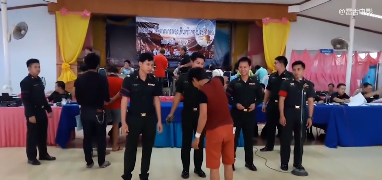 对于泰国的男性来说,每年4月,是他们人生中最重要的时刻,他们必须通过抽签,来决定自己的命运,这不, 天刚刚亮,学生们就聚在了体育馆里,教官们也稀疏到场,开始准备抽签。