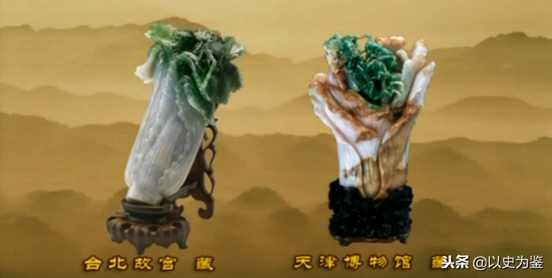 据说在慈禧太后的随葬品中,还有两件极为精美的翡翠白菜。但是随着东陵大盗孙殿英的破坏性盗墓,让这些随葬文物沉寂民间,下落不明。目前能见到最精美的两件翡翠白菜就是馆藏在台北故宫和天津博物馆的这两件了。