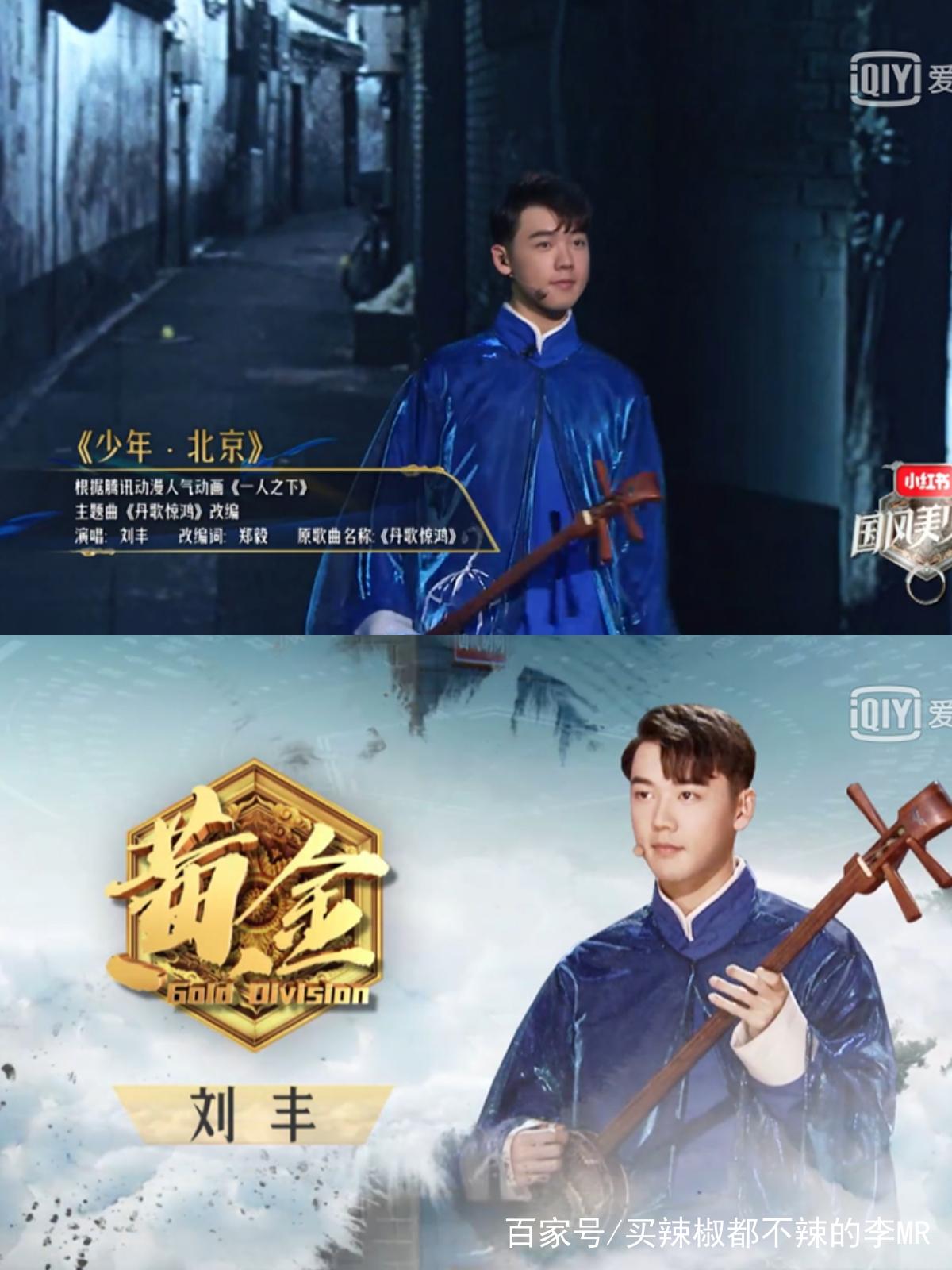 这一期的表演中,最博人眼球的应该就是第二位上场身穿蓝色长衫的刘丰了,踏着轻诺的小步伐抱着三弦走上了舞台,为大家带来了一曲有着浓重的北京胡同味道的《少年,北京》开口第一句就是清脆通灵的“绕不开,解不开,北京的缘(儿)阴一阵(儿)晴一阵(儿)北京的天(儿).......”小曲儿唱的确实非常有北京的味道,开口就得到了三位评委的喜欢,整首歌下来你就喜欢上了这个长相非常清秀的小伙子。就读于中央戏曲学院,在台上的表现确实证明了是一个非常有才华的小伙子。整首歌下来就有一种特别的喜庆的感觉,让人随着舞台上的音乐身临其境。而且在刘丰的表演中最有特色的就是运用了很多的儿化音,这种表演考验的是一个表演者对于“语言”的熟练度的掌握。这个可爱的小伙子除了小三弦还会大三弦笛子唢呐而且还会唱京剧,这绝对称得上是才华横溢了。