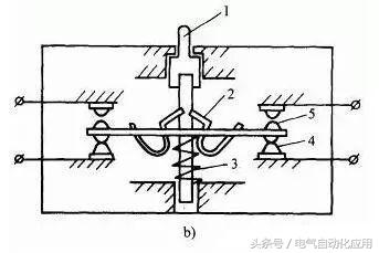 1、推杆 2.弹簧 3.压缩弹簧 4.动断触点 5.动合触点