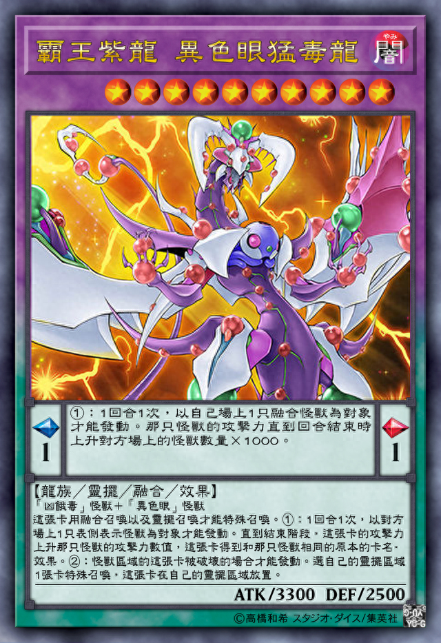 双色眼瞳的龙啊,与剧毒之龙合为一体吧,成为导向霸道的力量吧!融合召唤,level 10!慈爱之玉眼熠熠生辉的龙,霸王紫龙,异色眼猛毒龙!