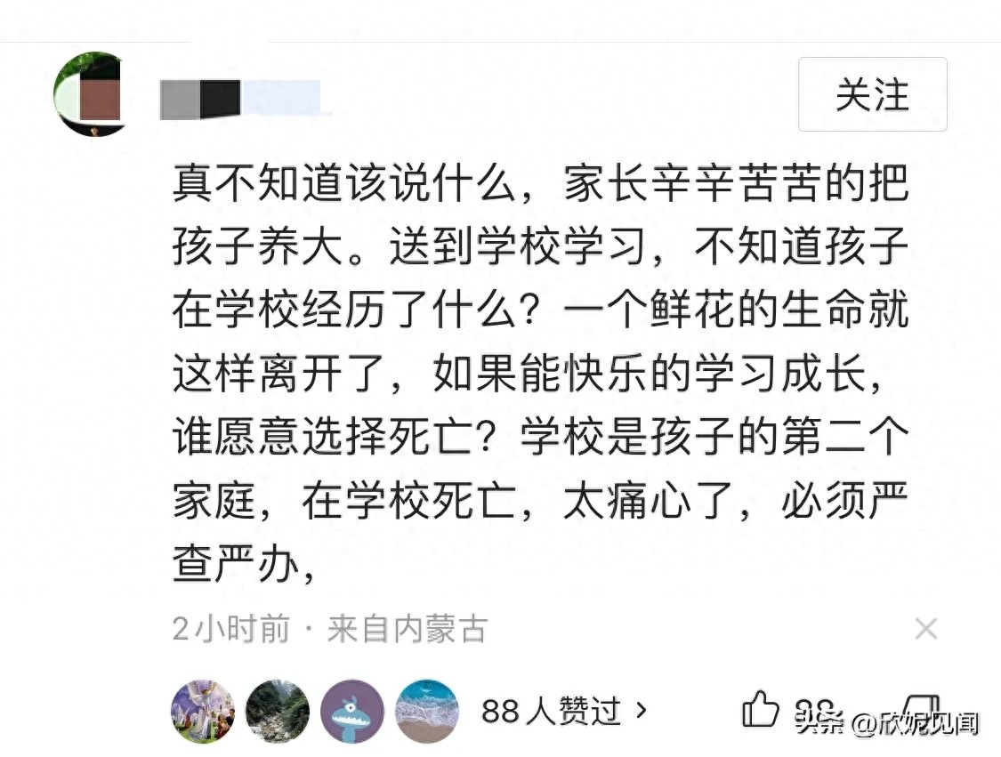真的太痛心了,学校相当于孩子的第二个家庭,孩子大部分的时间都是在学校度过,如今校园安全事故频频发生,怎么能让家长放心?