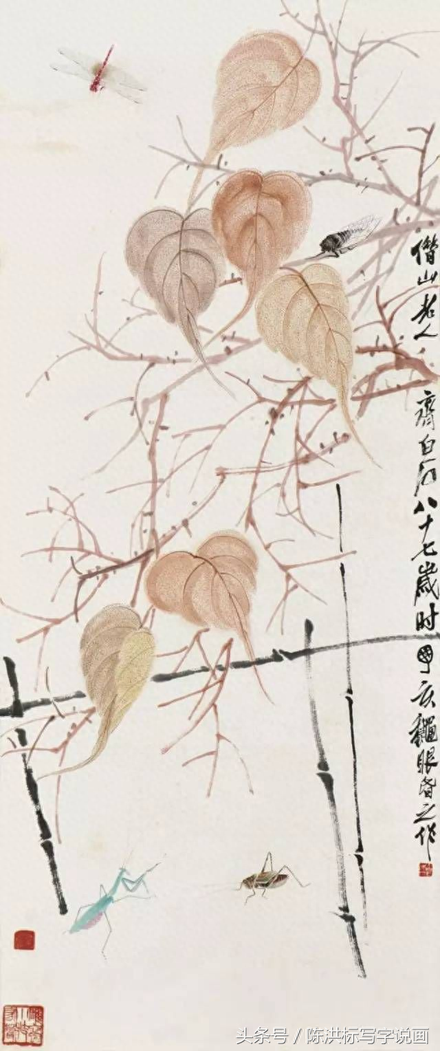 比如,齐白石画蝉,蝉翼都是透明的,透明的薄翼之上的网状纹脉,也纤毫毕现,比照片更厉害!照相机根本拍不出这种效果。那是不是绝对应该被质疑:怎么可以画得比照相机拍的还要好呢?
