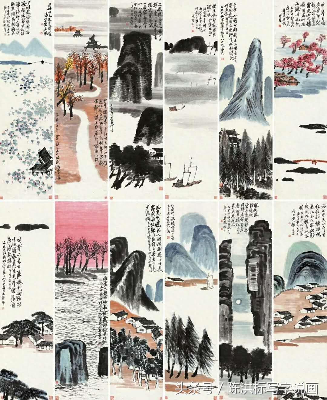 齐白石这样的例子太多了。最可恶的就是他那幅《山水十二条屏》,62岁了,还玩什么“衰年变法”。明显是想逞能嘛?