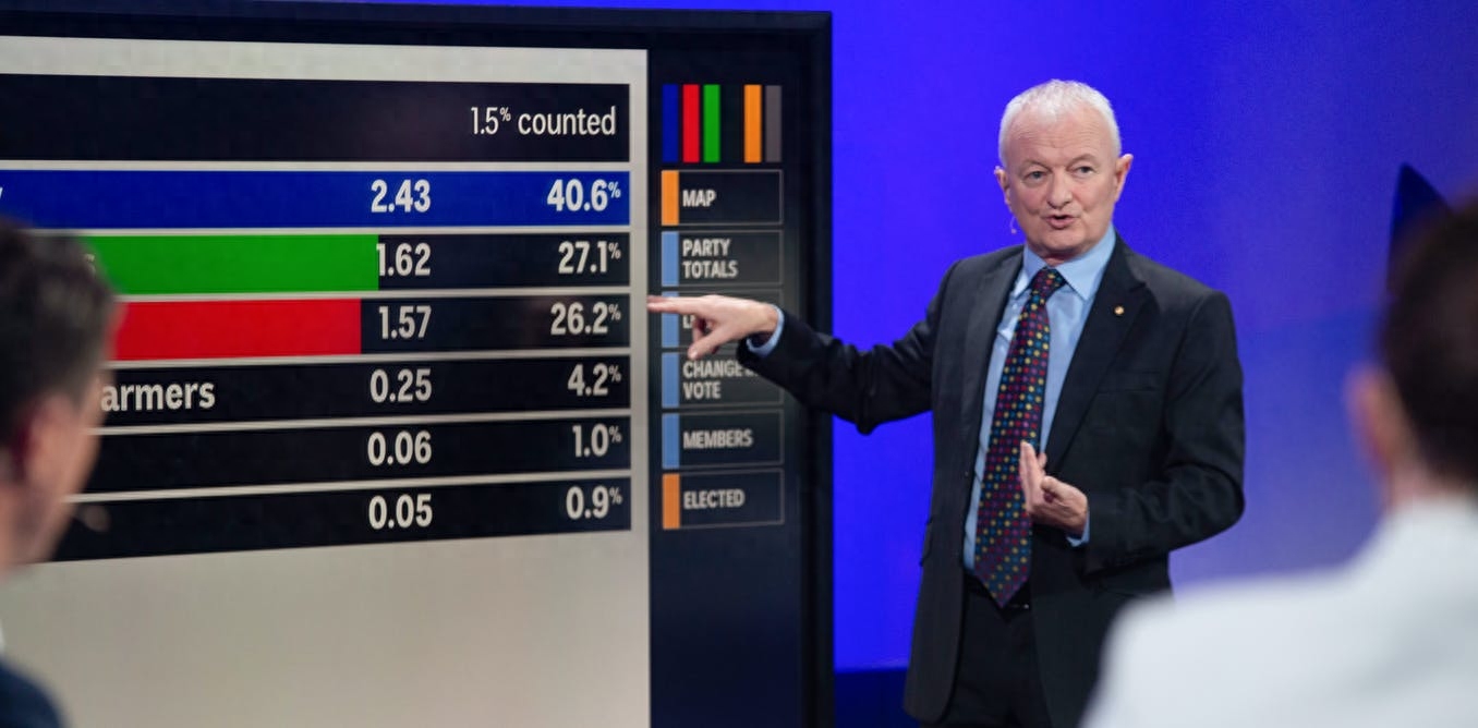 投票结束后,格林将不时出现在电视屏幕上,实时监测计票工作的进行。最终的投票结果会被输入由他管理的ABC选举专用计算机中。换句话说,这位首席选举分析师将是第一个宣布澳大利亚选举结果的人。