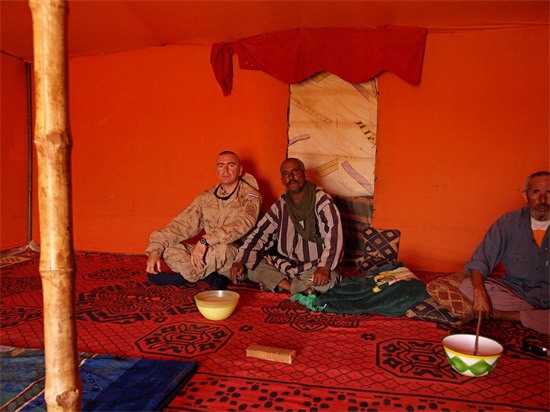 “白天50多度,这么热,这里的人为什么不去廷杜夫?”我问恩达拉。他已经六十岁了。整个人瘦瘦小小,皮肤黑黑的,头上没有头发。除了穿撒哈拉威人的长袍外,他经常穿的就是绿色军装,和中国刚解放后解放军穿的红领章军装很像。有时我都怀疑,可能是我们的军装淘汰后,转卖给他们了。
