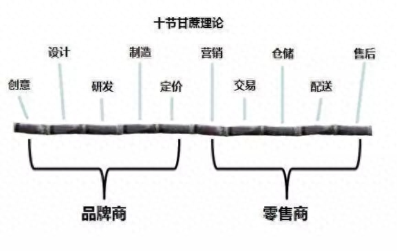 先从刘强东的“十节甘蔗”理论说起,他认为:一个产品从创意、设计、研发、制造到定价五个环节应该由品牌商来做。然后接下来的营销、交易、仓储、配送到售后这五个环节应该由零售商来做。