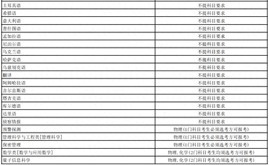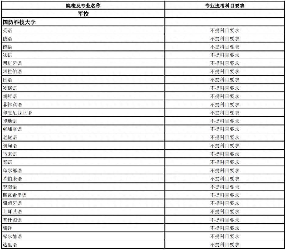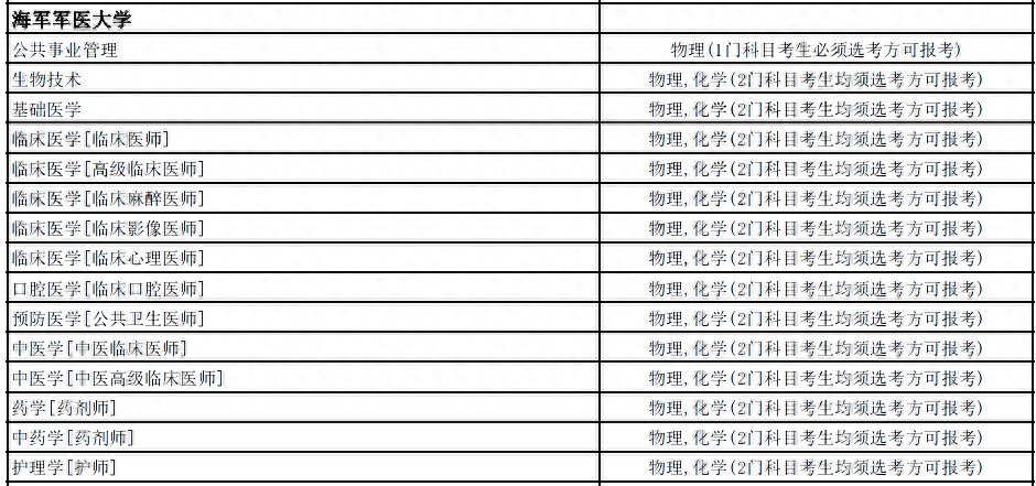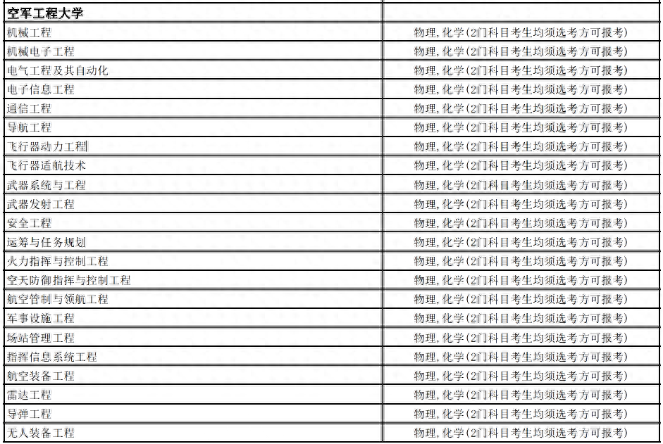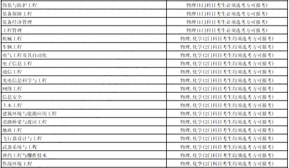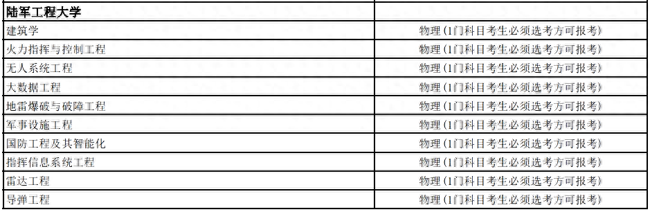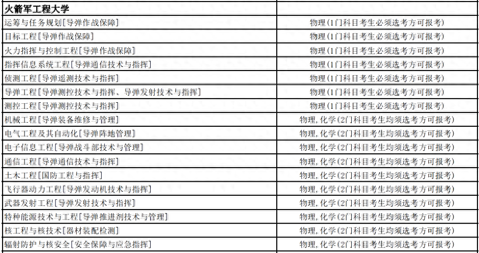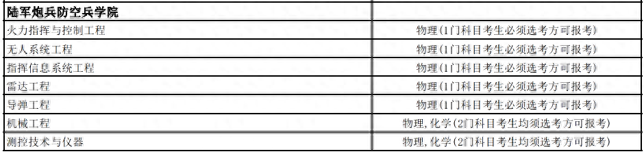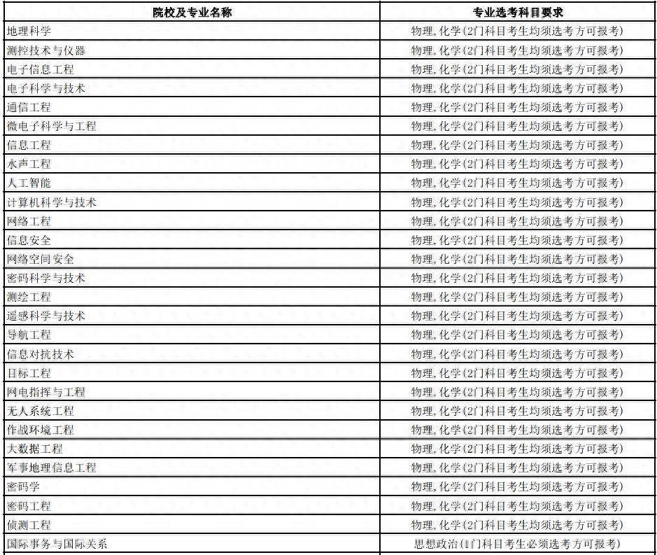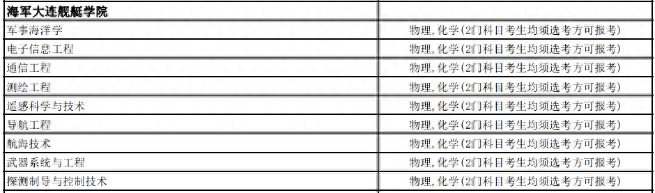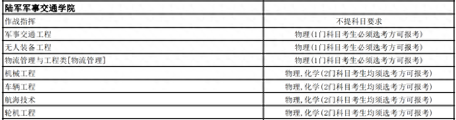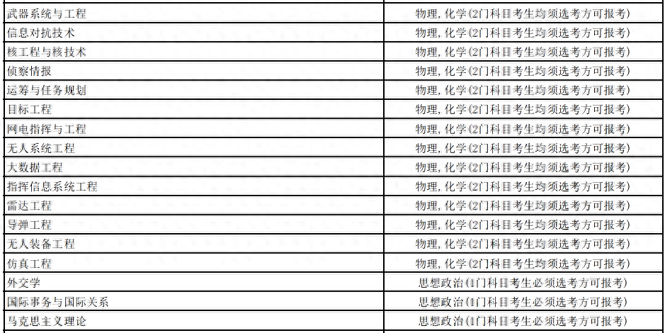 在这里以甘肃省教育考试院给出的2024年选科要求举例。在不同省份军事类院校招生的专业不全部一致,且选科要求也有区别。大家一定要具体参考最新的普通高校招生专业选考科目要求。