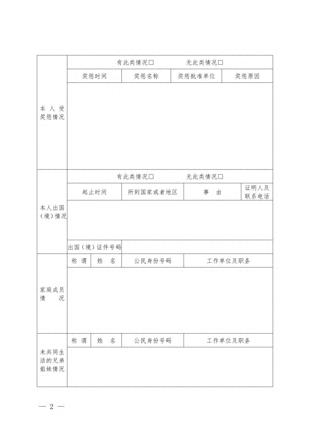 六、“本人受奖惩情况”栏,除填写有关奖励表彰情况外,也应如实填写受纪律处分、刑事处罚等情况。