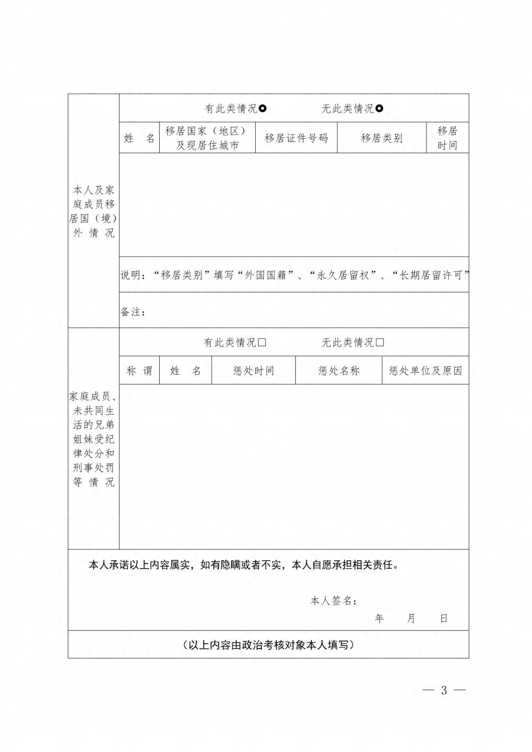 九、“本人及家庭成员移居国(境)外情况”栏,本人、家庭成员原本就是外国公民或者香港、澳门、台湾居民的,按照“移居国(境)外”情形填写;“备注”处填写移居国(境)外的情况变化,如“已放弃”、“无法放弃但已自愿申请被列为公安机关出入境管理部门登记备案人员”等。