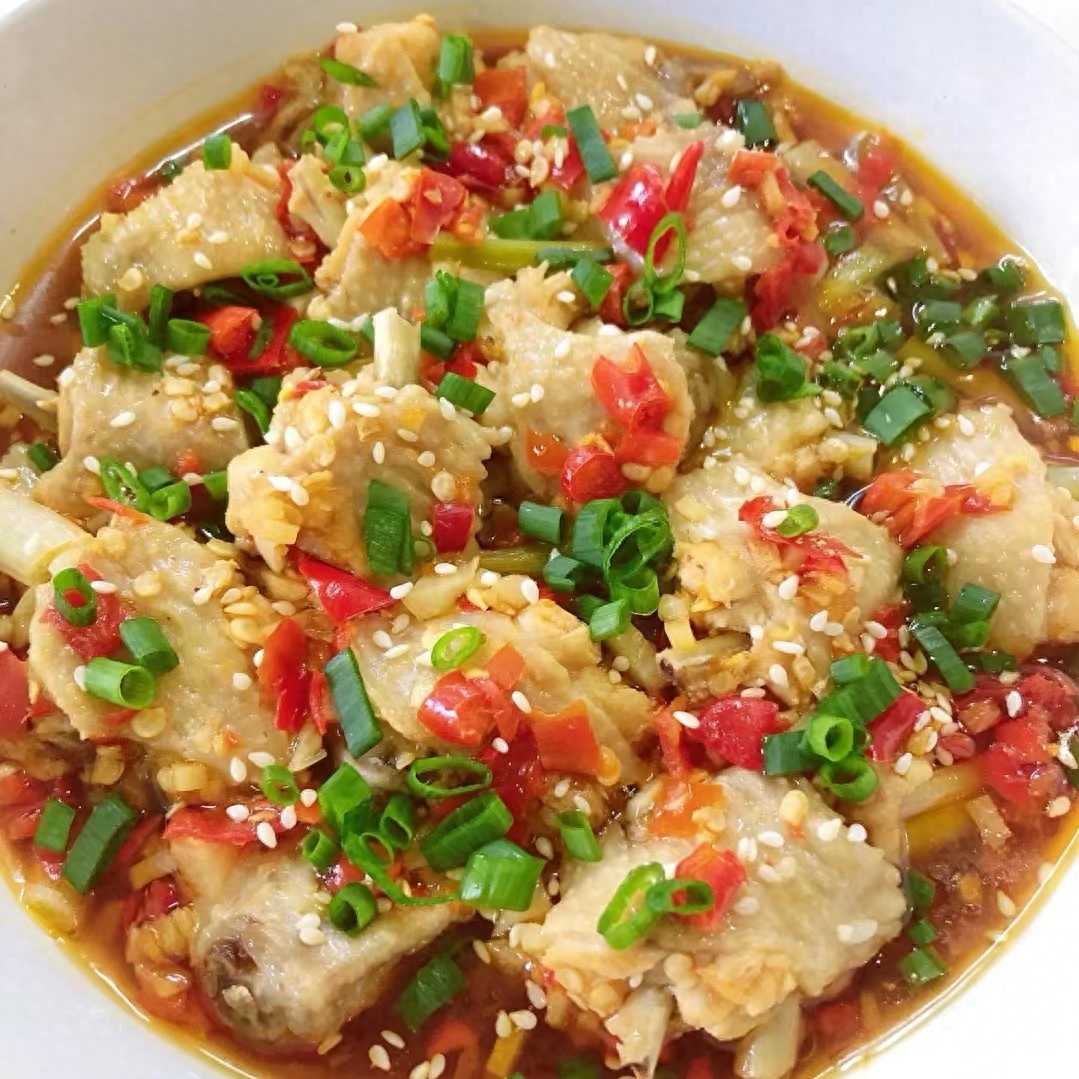 辅料:葱姜、蒜、泡椒,青红辣椒