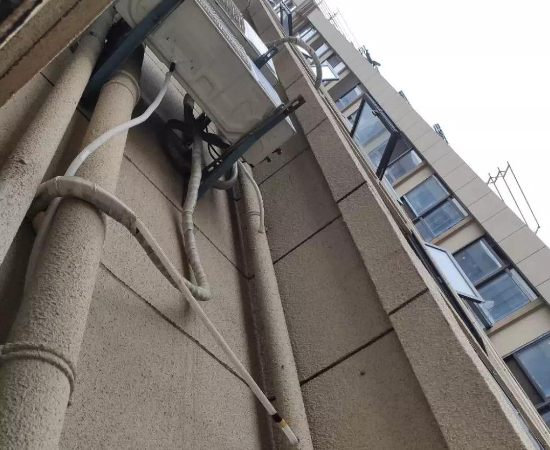 还有一种更特殊的情况,就是冷凝水管在安装时挺好的,后来一阵大风把管道吹跑了。