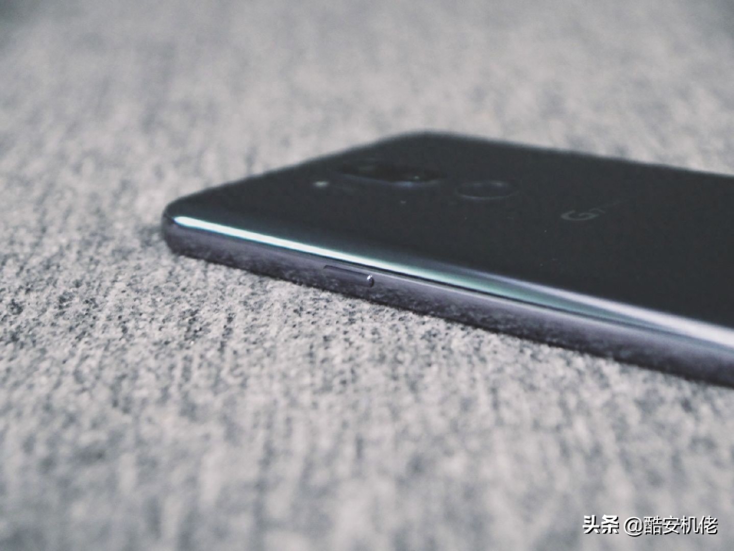 再往下是指纹识别按键,因为单独设置了电源按键,指纹识别按键也不再集成电源键的功能,所以也不能按压了,这让我有些不习惯,再往下就是 G7 和 LG 的 Logo。