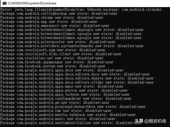 当然不是,我们还有万能的 ADB 命令,UP 在逛论坛的时候发现了一个大佬制作的禁用系统自带应用的批处理文件,这里感谢大佬们做出的贡献,论坛是个好东西,没事多看看。