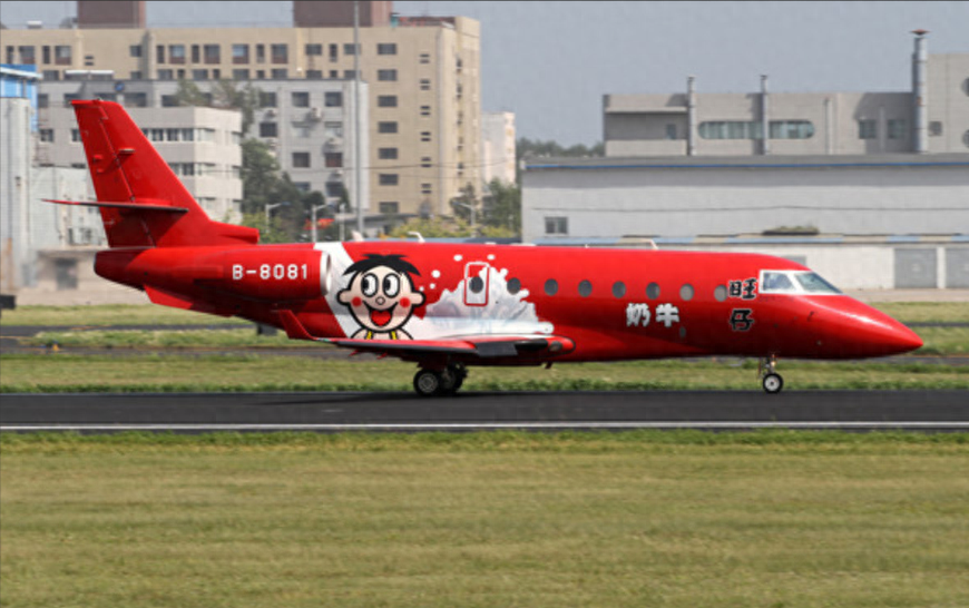 按照蔡衍明的要求,这架飞机通体红色,侧面印有“旺仔”的标识,并写着“旺仔牛奶”四个大字。