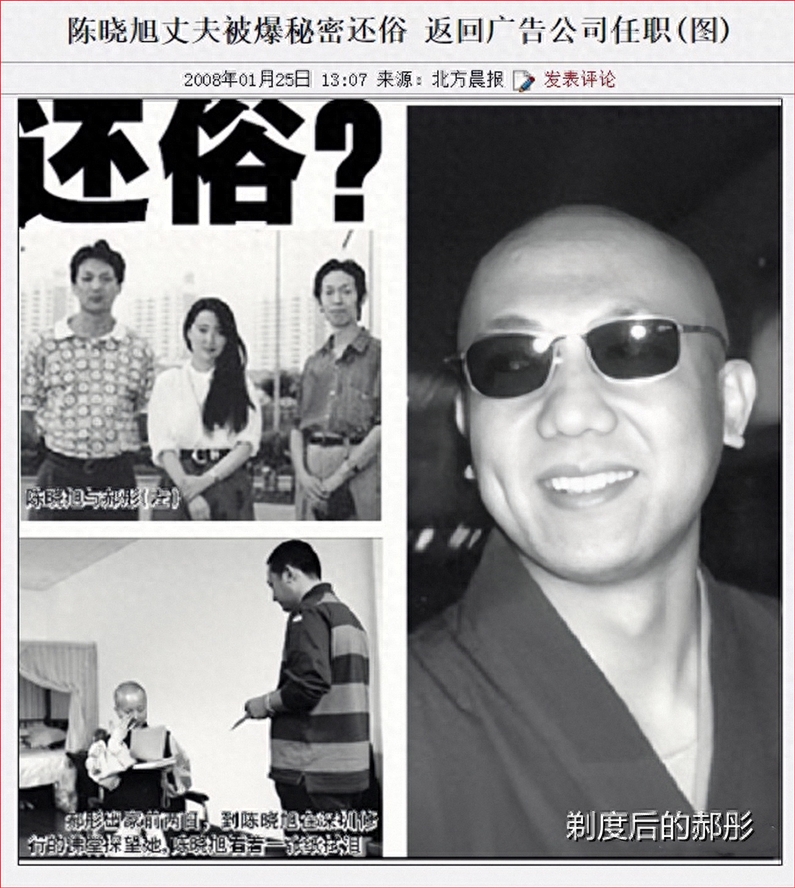 有媒体报道,陈晓旭生前“携手同修”的丈夫,郝彤已秘密还俗,并且回到了原来的公司任职,还娶妻生子。这背后一件件,一桩桩,扑朔迷离。
