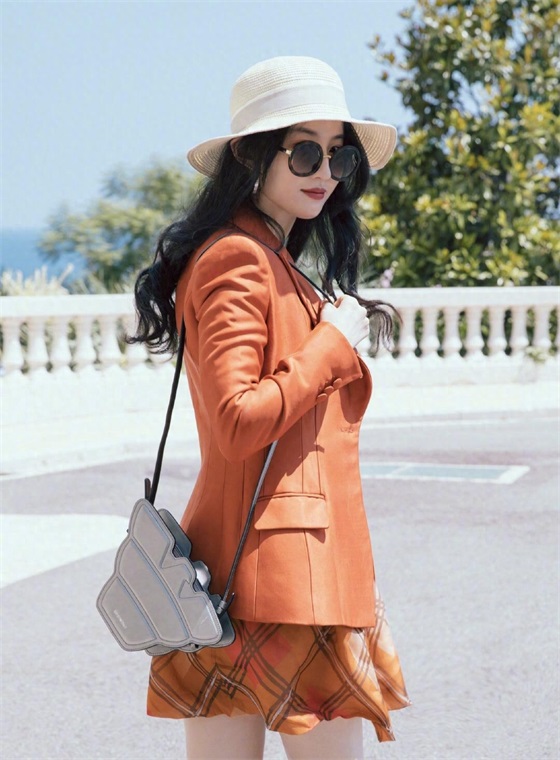 私下的装扮更是美艳十足,看着照片都想喊一声神仙姐姐下凡了。饱和度高的额橙色西装+短裙,搭配一顶大帽檐的遮阳草帽、一架圆形墨镜、一只高级腕表以及大圆圈金属耳环,清爽有气质,看惯了清纯的刘亦菲,偶尔的知性美也彰显其成熟优雅的迷人风采。