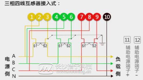 三相四线电表接线图: