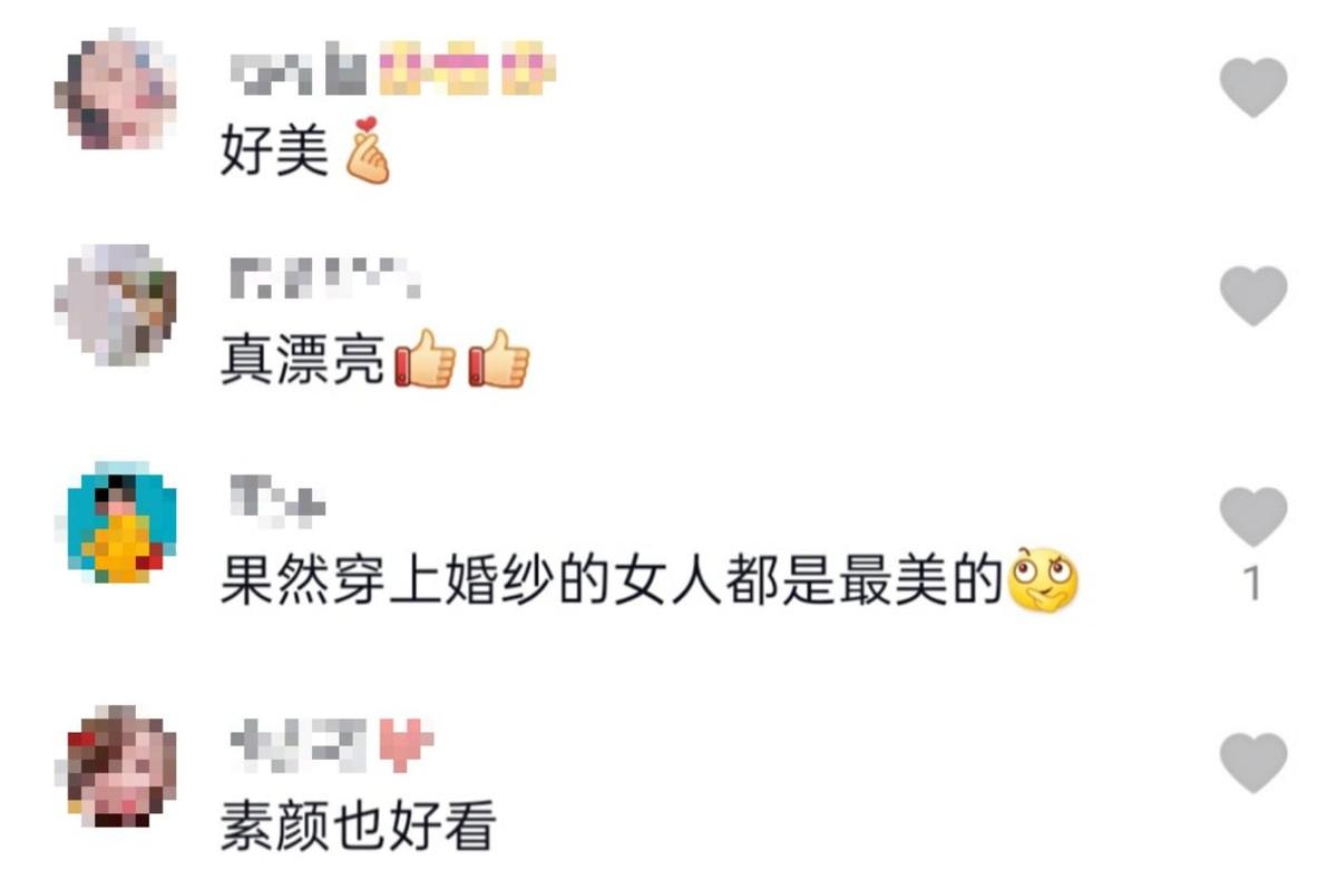网友看到后纷纷表示潘阳“好美”“真漂亮”,还有很多网友认为潘阳“素颜也好看”,另外有人表示“果然穿上婚纱的女人都是最美的”。