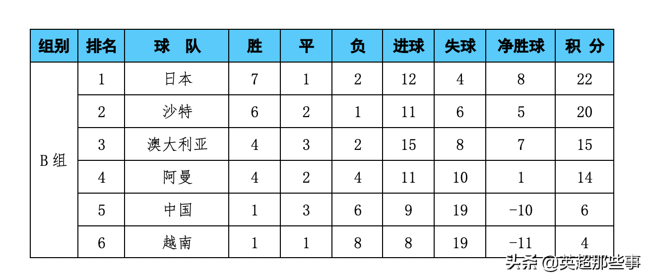 B组的另一场比赛,日本队主场1-1战平越南队,两支球队都拿到了本次12强赛的首场平局,日本队的6连胜遭到终结。另一场比赛沙特对阵澳大利亚的比赛将在之后进行,这场比赛的胜负已经无关紧要,沙特队如果赢球,就能攀升到本小组第一。