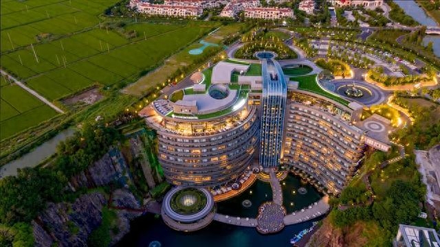 上海天马山世茂深坑酒店地处上海市松江余山国家旅游度假区里,是世界首个建造在深坑内的酒店,深度约88米是世界上人工海拔最低的五星级酒店。