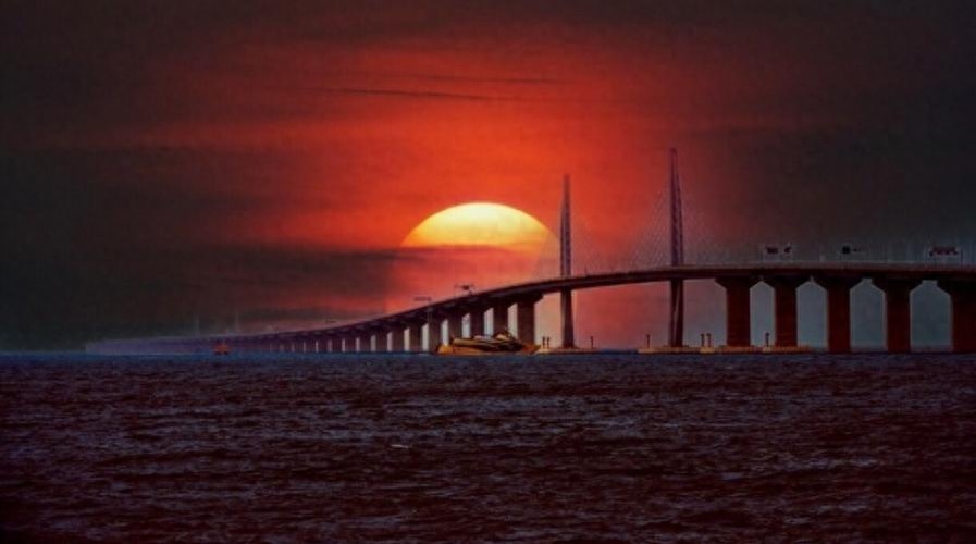 2009年12月15日港珠澳大桥开工,到2018年10月24日竣工历时9年多,东起香港国际机场,西止珠海洪湾全长55公里为世界上最长的跨海大桥,海面洋流环境复杂建设难度也是世界上最难的跨海大桥在外国专家眼中是不可完成的任务,项目总投资:一千亿元以上;极大的缩短内地与香港,澳门的通行时间,为粤港澳大湾区的经济发展带来强劲的动力。