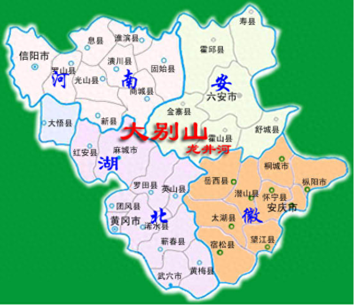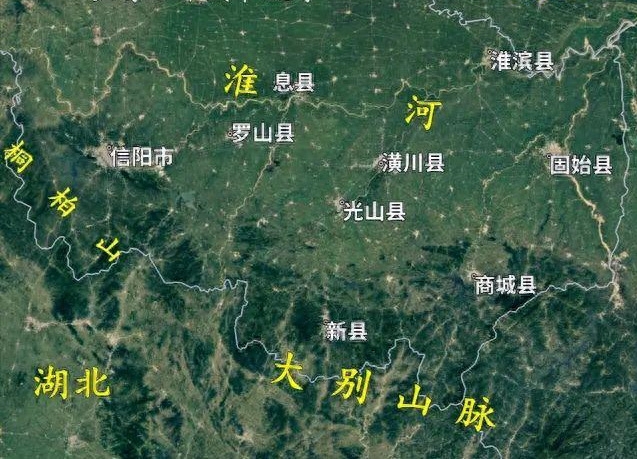 河南大别山区域县市分布图,新县是大将许世友、上将李德生的故乡