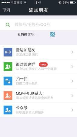 在此次新版本中,“添加朋友”界面更为简洁,“雷达加好友”、“面对面建群”、“扫一扫”等多种方式都将更加方便用户快速添加好友。不仅如此,以往想找到自己的二维码名片还需进入个人资料进行查看,现在就可直接在“添加朋友”界面查看到自己的二维码和微信号啦。