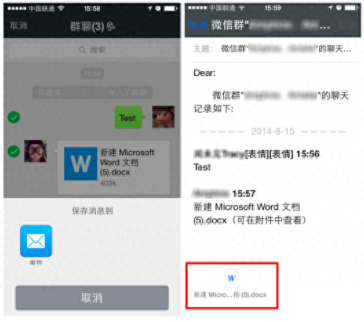 在微信里,大boss给你发了一份重要文件要你安排同事一起执行,于是你赶紧将聊天记录和文件作为邮件转发给同事,可是以往在邮件编辑中,你还需先保存boss发的文件,再添加在邮件中,太麻烦有木有!现在直接在聊天界面中选择多个消息,发送邮件,即可自动将消息里的文件作为附件进行发送。