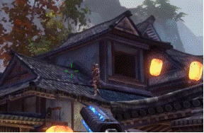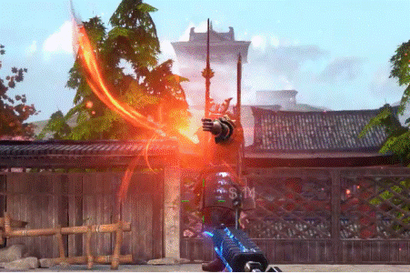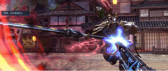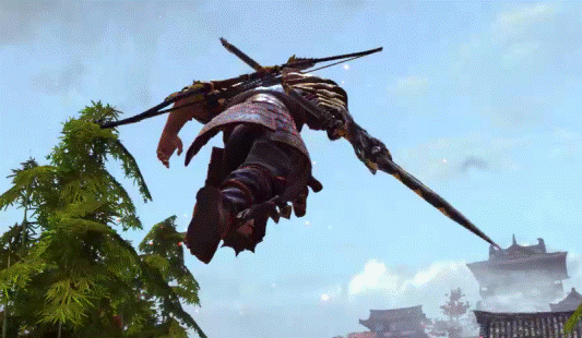 在鬼面武士血量较低时,他会拿起背上的弓箭进行射击,在他做这样的动作的时候,注意左右移动,就能规避他的范围射击