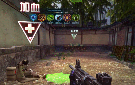 地图上会显示一些补给点,在这些地方我们可以对准他们按“E”键回复生命值和弹药,注意观察这些补给点并及时补给,可以让接下来的战斗更加轻松。