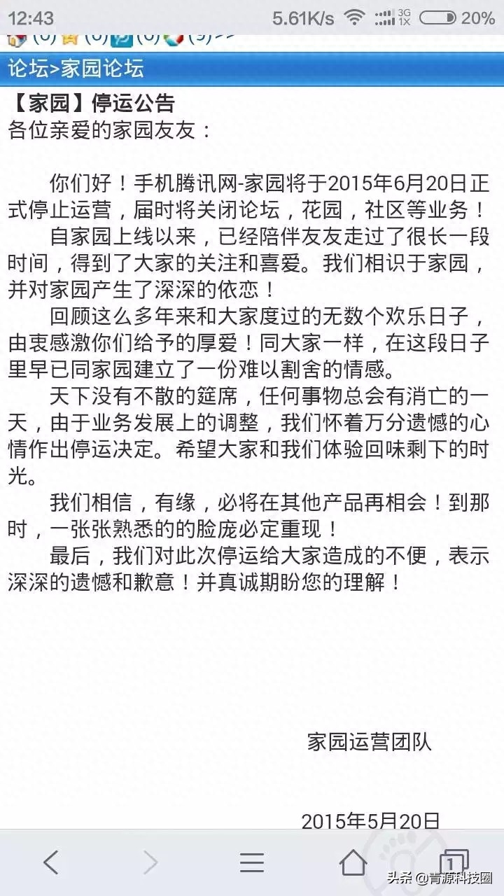 2015年5月20日这个特殊的日子,腾讯也正式关闭了手机腾讯家园。