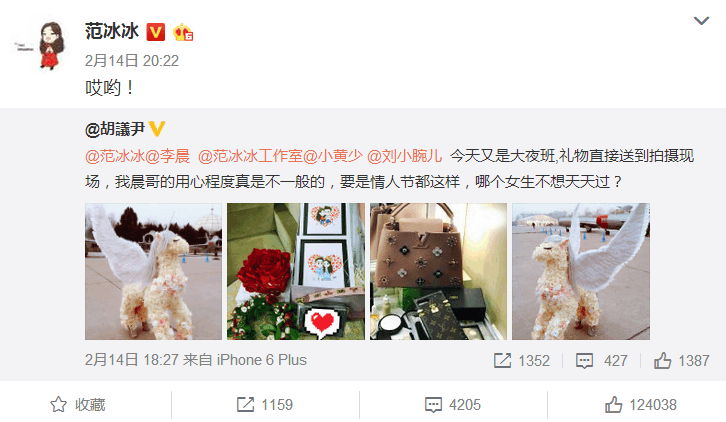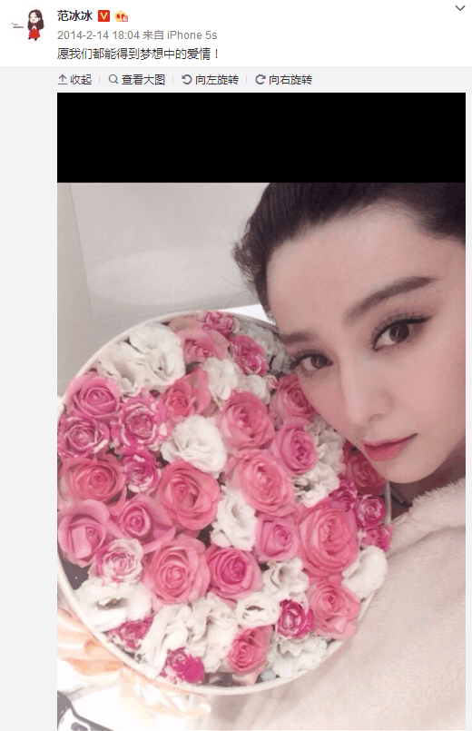 过去3年的情人节,范冰冰的微博都发了啥