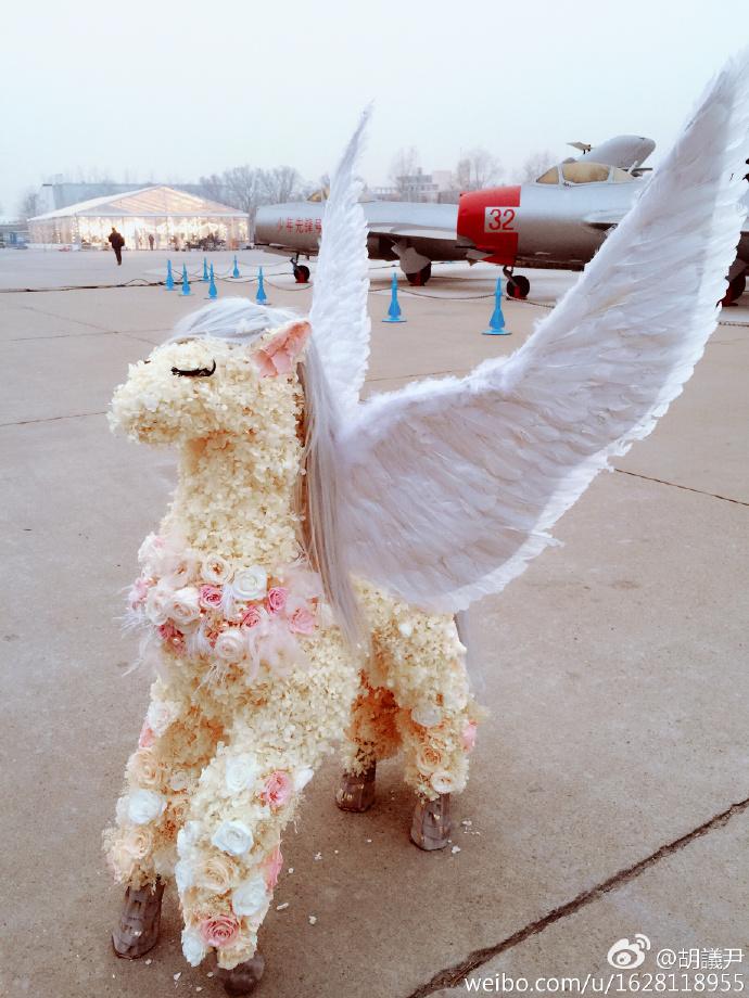 李晨今年送的礼物可是下了一番功夫的,先是把这个由花朵组成的小马送到了范冰冰工作的现场。