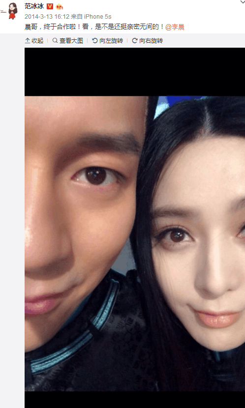 说起来,范冰冰2014年3月13日第一次在微博晒出与李晨的合影,当时她是为了庆祝和李晨第一次合作,虽然没有确定关系,但是看他们亲密的样子,应该彼此是有好感的。