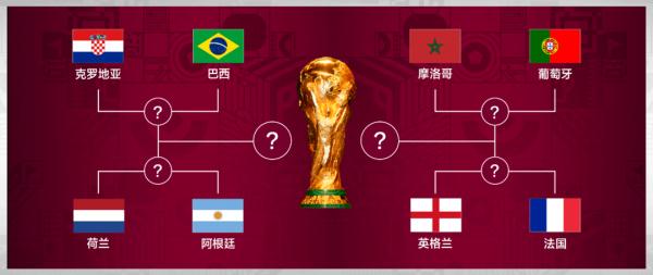 卡塔尔世界杯1/4决赛将于今晚(北京时间12月9日23时)打响,首场比赛在巴西与克罗地亚之间进行。本届世界杯8强球队分别是克罗地亚、巴西、荷兰、阿根廷、摩洛哥、葡萄牙、英格兰和法国。