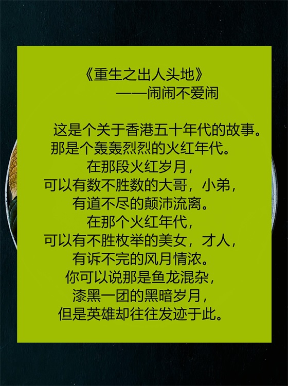 推语:非常有味道的港风商战文,讲述了男主重生到五十年代香港后,从底层小人物一步步重新走向人生巅峰的故事。很多小人物,百态人生,虽然没法去验证,但个人觉得作者的描写还是很接近那个时代真实的香港生活的。全文比较长,属于早期比较经典的作品,适合一气呵成地读完。