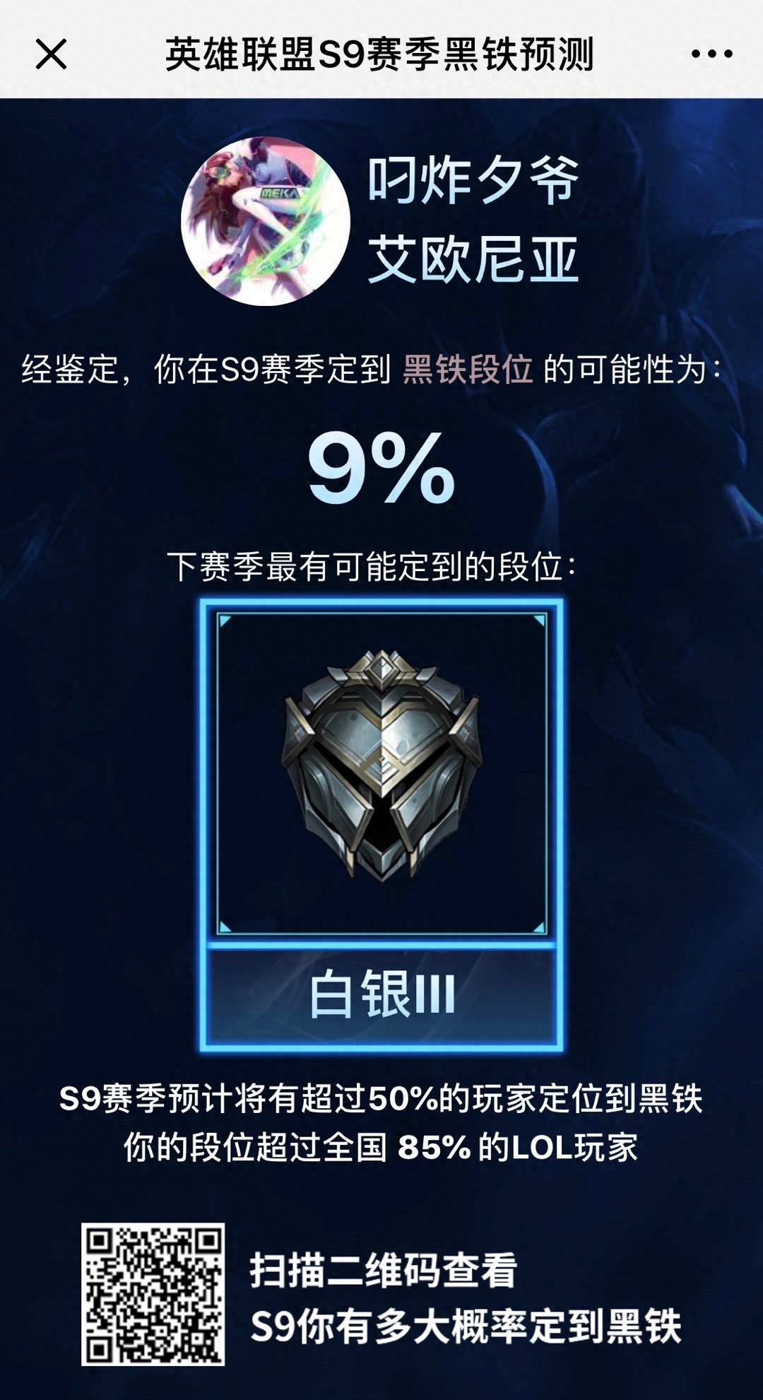 你的号定位在黑铁的可能性是多少?