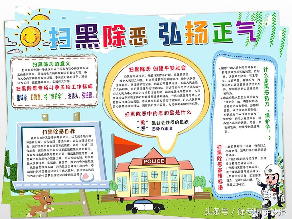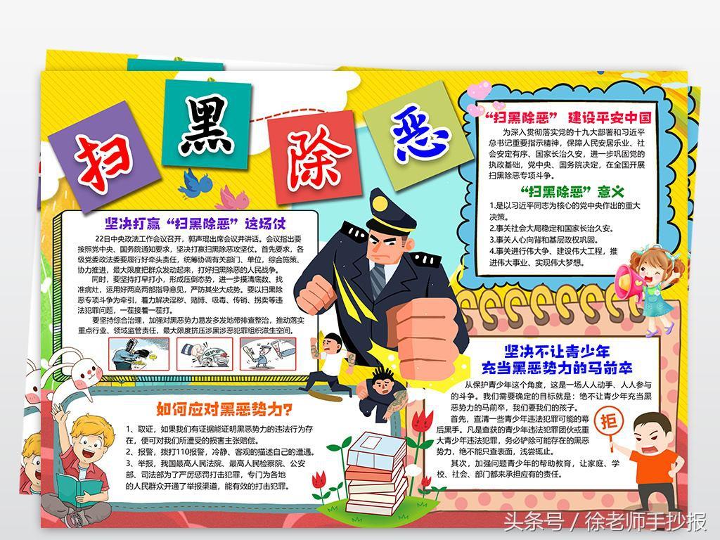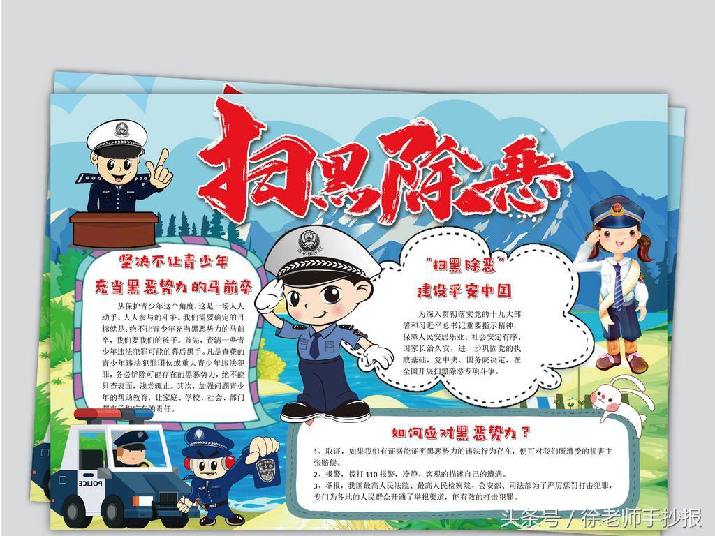 互联网+”时代的到来,黑恶势力借助科技发展,在黑恶活动中充分利用科技和信息手段,强化了犯罪的隐蔽性,也让青少年在接受新兴事物的同时因对其没有清晰的认识而受到侵害。青少年是祖国的未来和民族的希望,在扫黑除恶专项斗争如火如荼开展的同时不能忽视对他们的关注,应该重视其发展,保护他们不受伤害,预防他们误入歧途,构筑和谐校园,为他们营造良好的学习成长氛围。扫黑除恶预防校园欺凌手抄报图片分享给同学们!!!