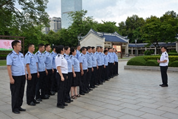 6月30日下午,在七·一党的生日即将到来之际,自治区高院法警总队党支部和南宁市中院法警支队党支部全体党员干警来到南湖公园,在百色起义革命先烈雕塑前缅怀追思、致敬英雄。法警总队崔德祥总队长带领干警们面向鲜红的党旗,庄严地举起右手,重温了入警誓词。崔德祥总队长激励党员干警坚定崇高理想信念,不忘初心、牢记使命,增强支部凝聚力战斗力,以高度责任感、使命感做好新时代人民法院司法警务工作。
