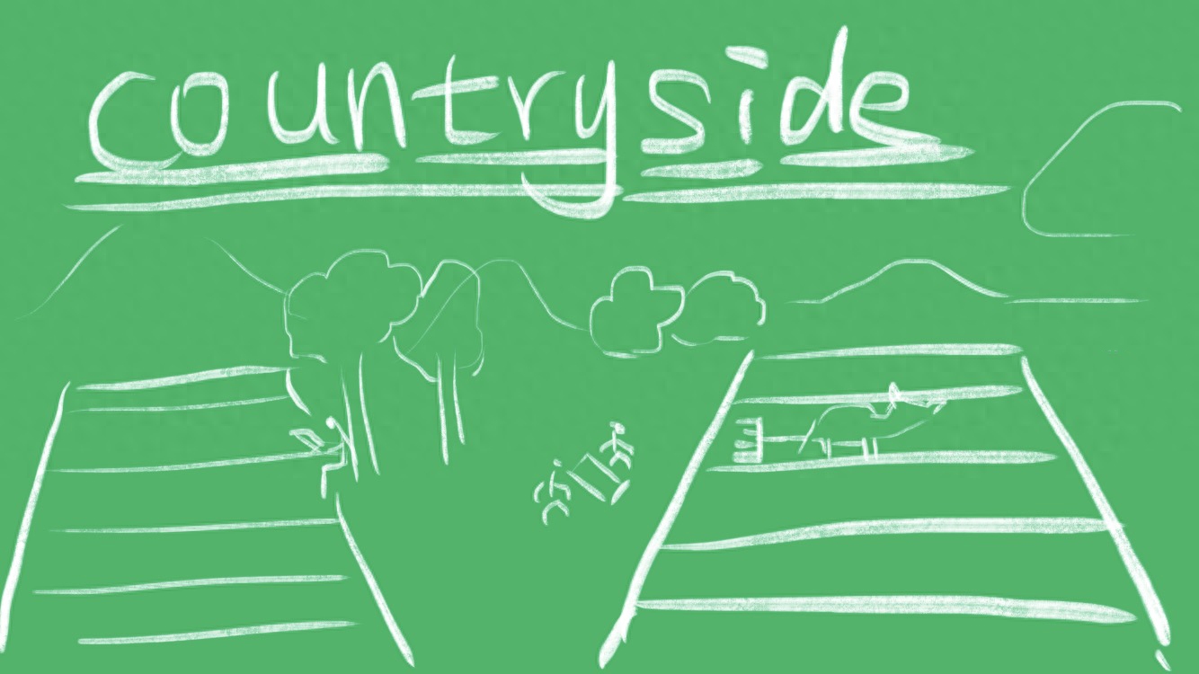 land not in towns, cities, or industrial areas, that is either used for farming or left in its natural condition