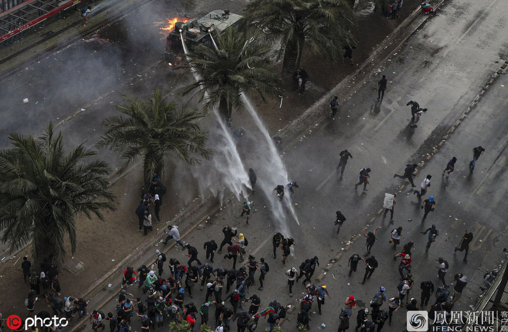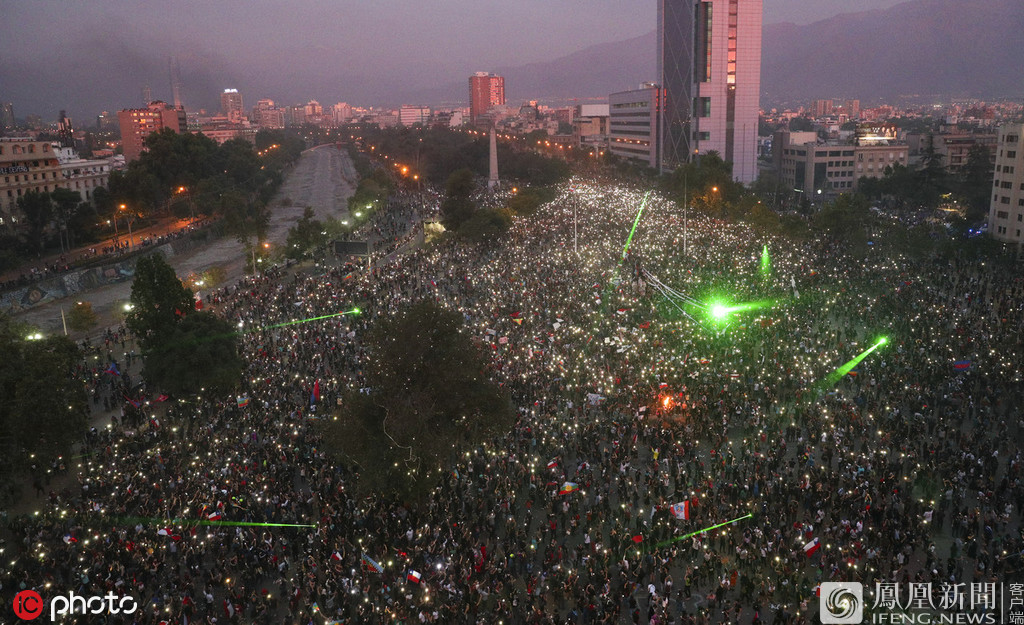 智利动乱缘故是什么?智利动乱现场请愿者用镭射灯扰乱直升机