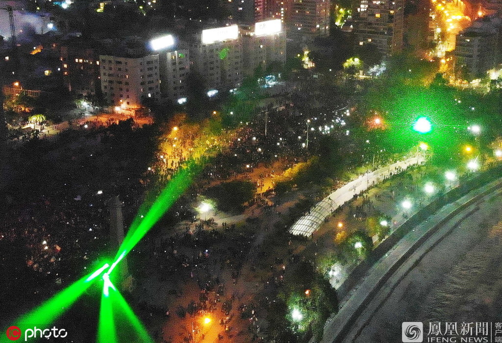 本地时间11月报道,智利都城胜地亚哥的动乱持续,晚上直升机在空中察看时,遨游员创造地面“绿光闪闪”,犹如蹦迪现场。本来是大指请愿者用镭射灯举行扰乱。遨游员称一度损失眼光,简直爆发坠机事变。根源:epa/IC photo
