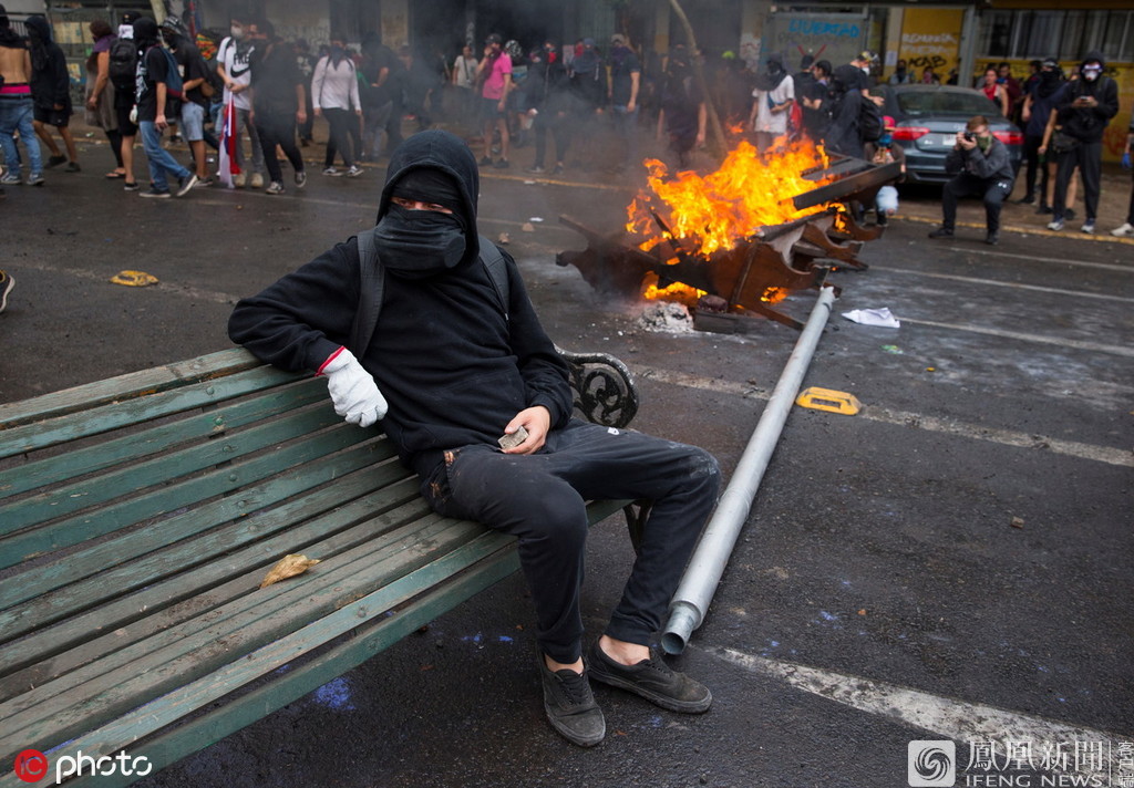 智利都城胜地亚哥动乱持续,反当局请愿者会合破坏公接体系票价提价。