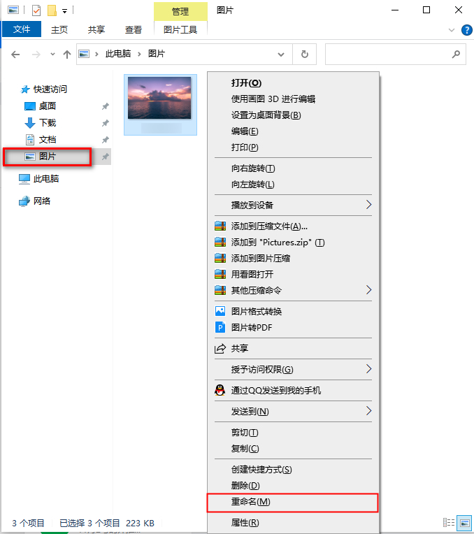方法二:借助“图片”来实现批量重命名图片文件的操作。