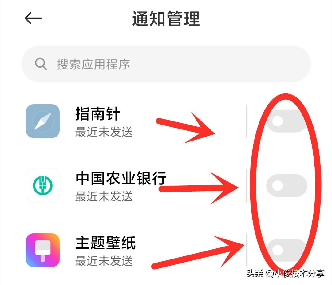 在通知管理中,找到不要通知的应用,把开关往左滑动,变成灰色即可!