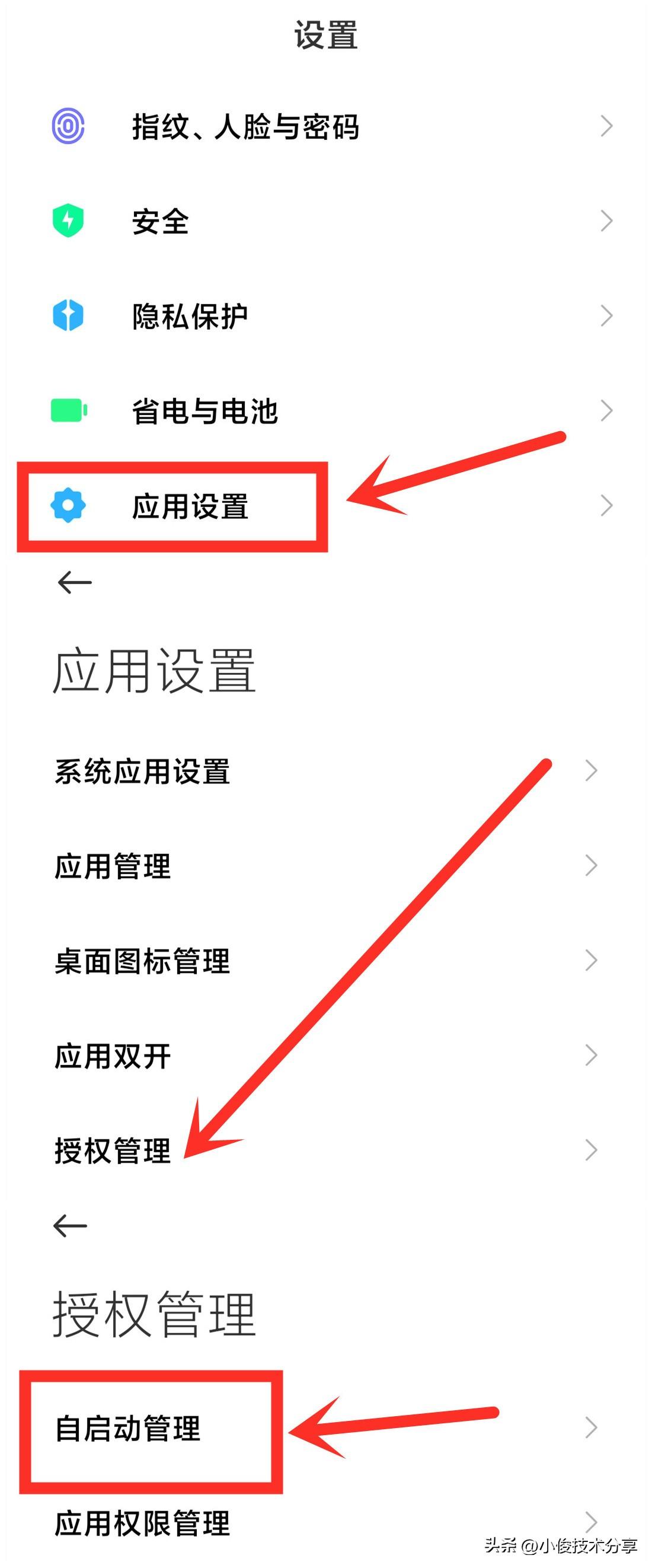 我们打开手机设置,接着在应用设置中找到【授权管理】,打开授权之后我们就可以看到【自启动管理】了